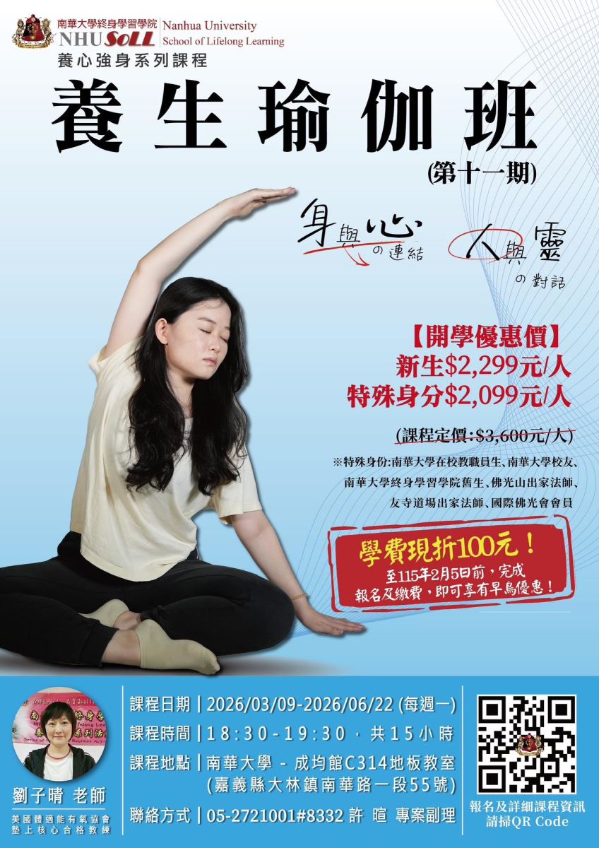 課程名稱:114-2【養生瑜伽班】(第十一期)